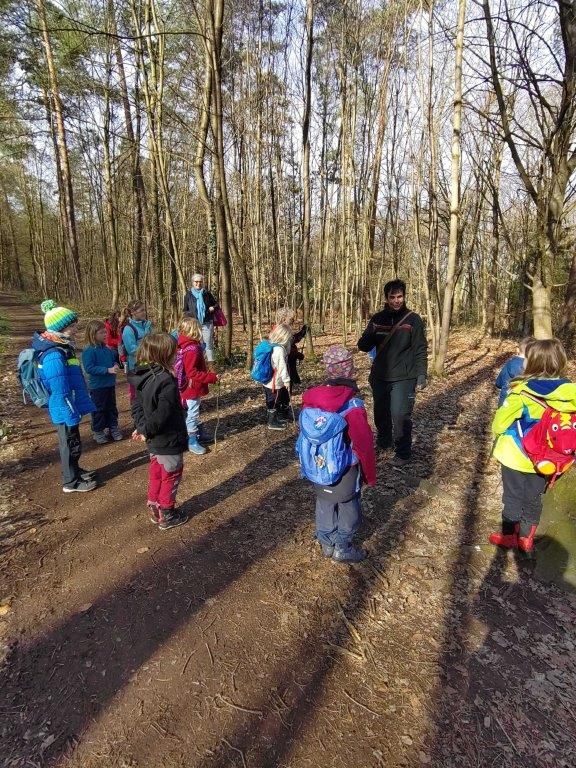Für die Kinder war es nicht erstaunlich, dass sie es mit einer Frau in einem eher von Männern dominierten Berufsfeld zu tun hatten. Hoffentlich behalten sie ihre Natürlichkeit im Denken. Viele von unseren Kindern waren in einem Waldkindergarten und trugen zusammen, was im Wald zu beachten ist. Erstaunt waren wir, dass wir im Wald nicht so leise sein müssen, wie wir dachten. Solange wir uns auf Waldwegen befinden, können wir davon ausgehen, dass die Tiere mit uns rechnen und somit wissen, worauf sie sich einlassen.
