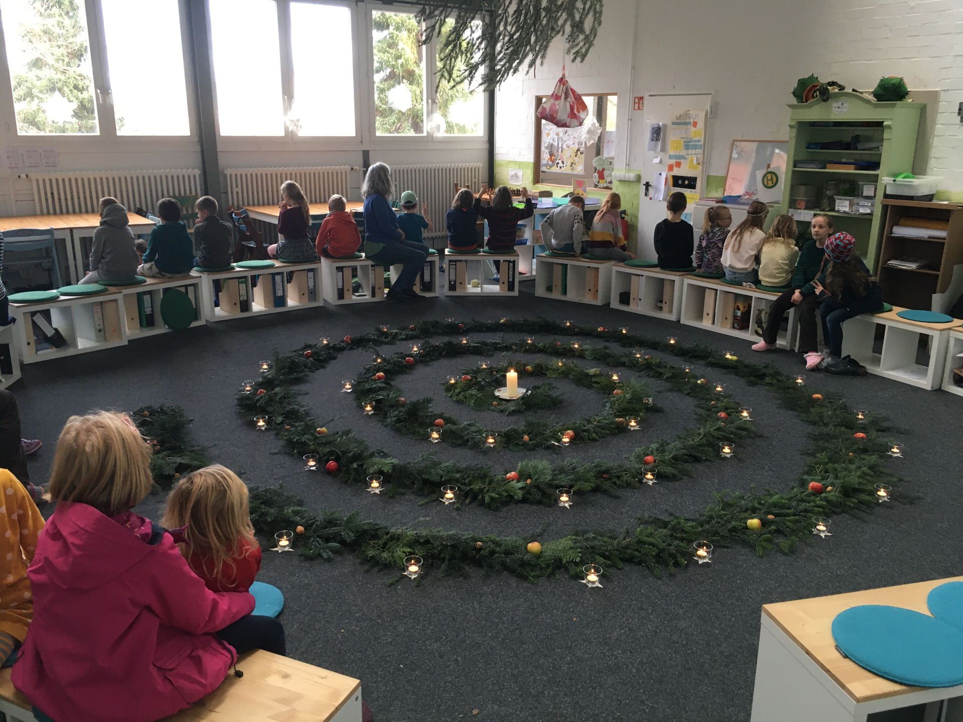 Im November machten wir ein Laternenfest mit ganz frei entworfenen Laternenbildern. Die Eltern dekorierten auf dem Schulgelände eine feierliche Lichterfeststimmung. Als neues LdE-Projekt (Lernen durch Engagement) starteten wir eine Kronkorkensammelaktion. Wir wollen teilen wie der Soldat Martin und unterstützen mit der Abgabe der Kronkorkensammlung die Wünsche von an Krebs erkrankten Kindern und Jugendlichen. Am 19.11. besuchten die Dritt- und ViertklässlerInnen die Bibliothek in der Meysfabrik. Frau Krässel machte den Kindern große Lust aufs Lesen. Bald werden die Kinder Bücherkisten zu ihrem Lieblingsbuch erstellen. Ende des Monats bereiteten wir uns in einer Adventszauberaktion auf die Weihnachtszeit vor. Da wurde gesägt, gedruckt, gemalt, gebastelt und mehr. Das Vorlesen mit dem Kamishibai sorgte für einen besonderen Literaturgenuss. Plätzchen und Santa Lucias Kinderpunsch rundeten den Tag ab.